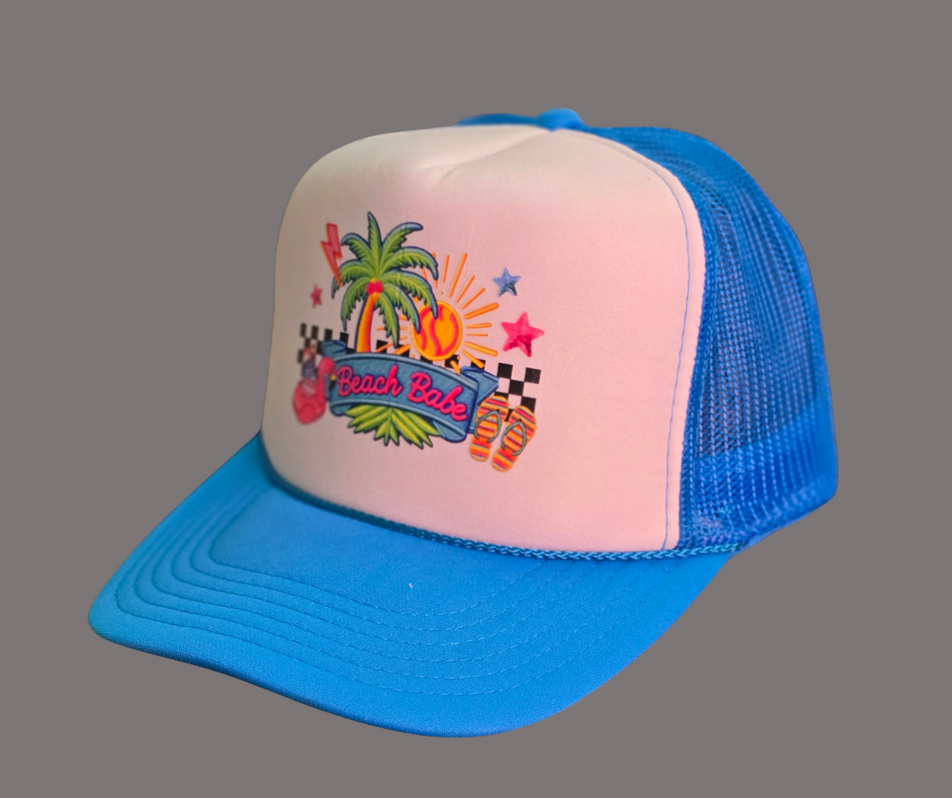 The Sunkissed Trucker Hat brings effortless summer vibes with its soft white foam front and bold multicolored lettering. The breathable mesh back keeps you cool, while the durable snap closure ensures a customized fit. Designed with a classic curved bill, it offers both sun protection and a stylish, laid-back look. Whether you’re at the beach, out for a stroll, or just soaking up the sunshine, this hat is the perfect finishing touch to any outfit.
